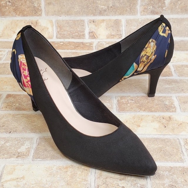 - 美品 ラウナレア バックデザイン ポインテッドトゥ パンプス 22 日本製 ブラック スカーフ Launa lea