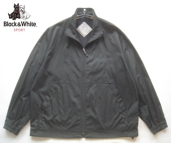 > 高級日本製!!ブラック&ホワイト Black&White*ロゴプリント フリース裏地 立ち襟ナイロンZIPジャケット L 黒