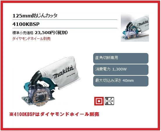 - マキタ 125mm 100V 防じんカッタ 4100KBSP [ダイヤモンドホイール別売]■安心のマキタ純正/新品/未使用■