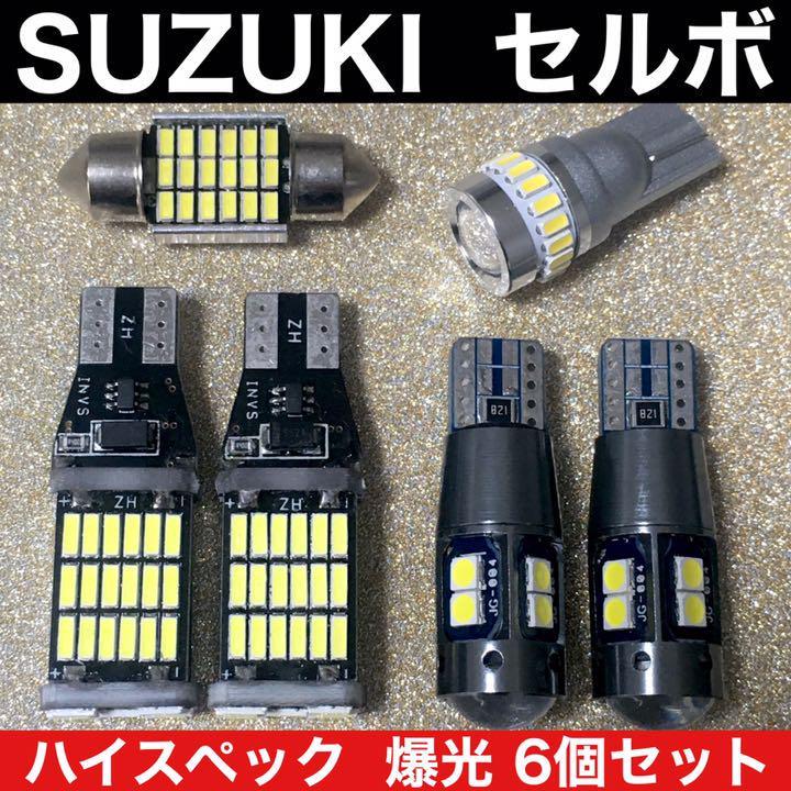 - スズキ セルボ HG21S 爆光 バックランプ ポジション球 ナンバー灯 T10 LED ルームランプ 純正球交換用 ホワイト 6個セット