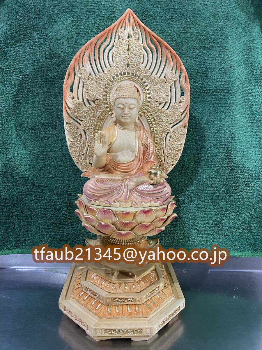 - 仏教美術 薬師如来 薬師瑠璃光如来坐像 仏像 彫刻 ヒノキ檜木 自然木 職人 手作り 置物 美術品 東洋彫刻 高さ32cm