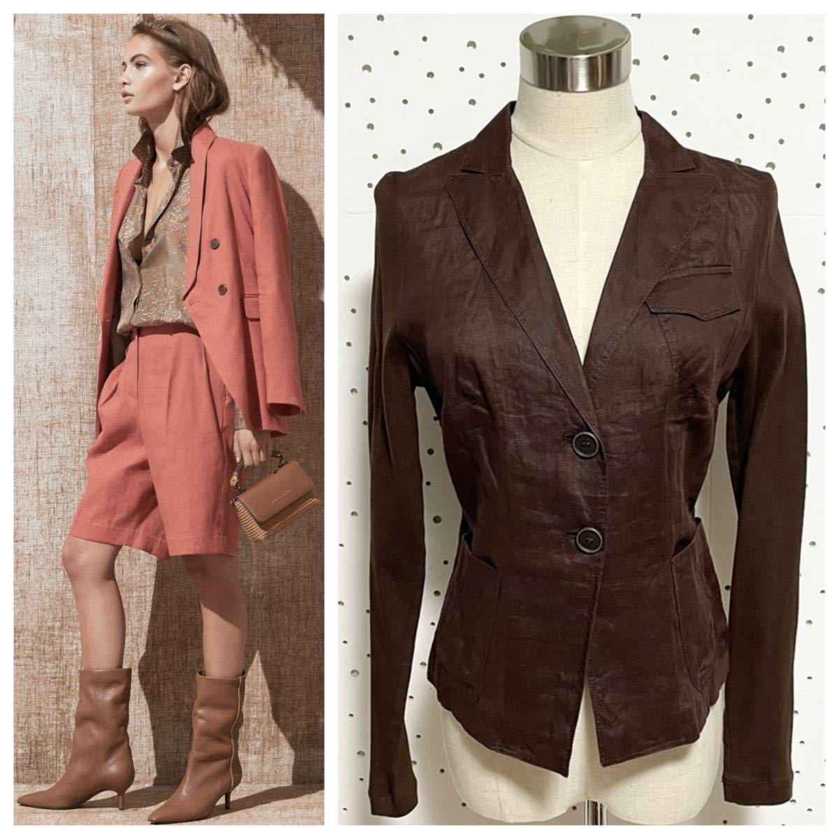 > 本物 高級 ブルネロクチネリ 2B ニット切替 薄手 ラミー 麻 リネン ジャケット 40 ブラウン 茶色 BRUNELLO CUCINELLI レターパック可