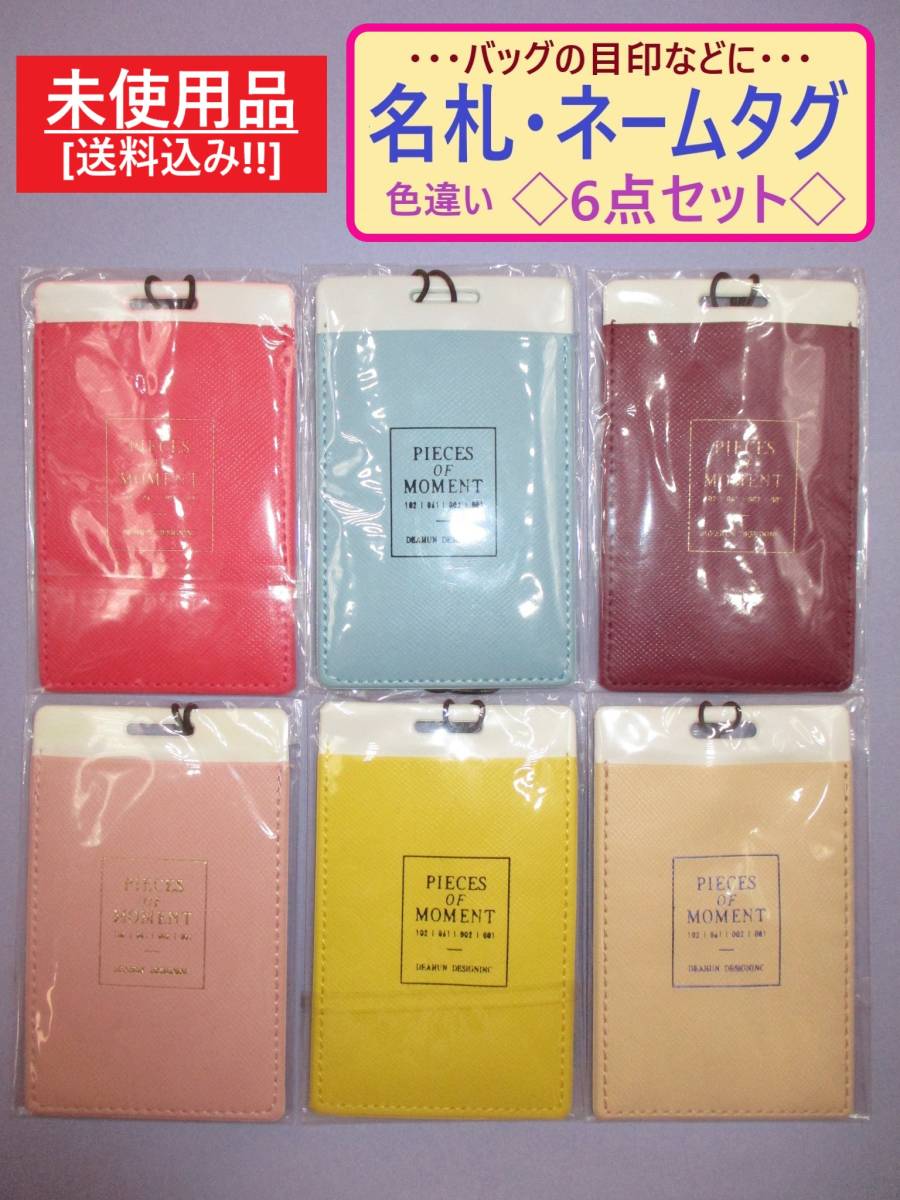 > 未使用 名札 ネーム タグ 色違い 6点セット C 長期保存 荷 札 ビニール ゴム紐 旅行 荷物 カバン バッグ スーツケース 目印 英字 海外製