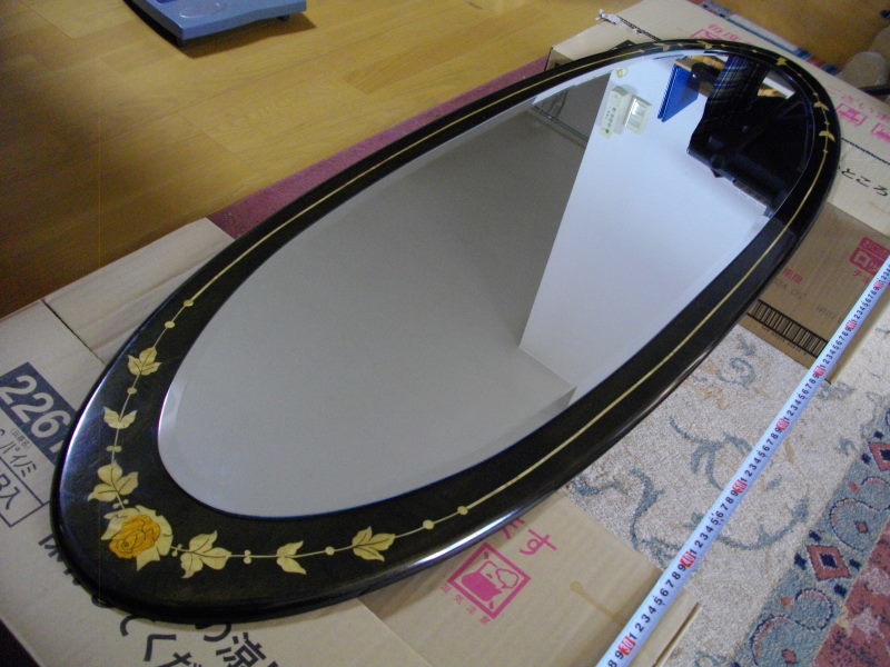 - ■送料無料!■象嵌細工・ミラー・H128×W44cm■鏡■壁掛け■アンティーク家具■特大・希少品!!