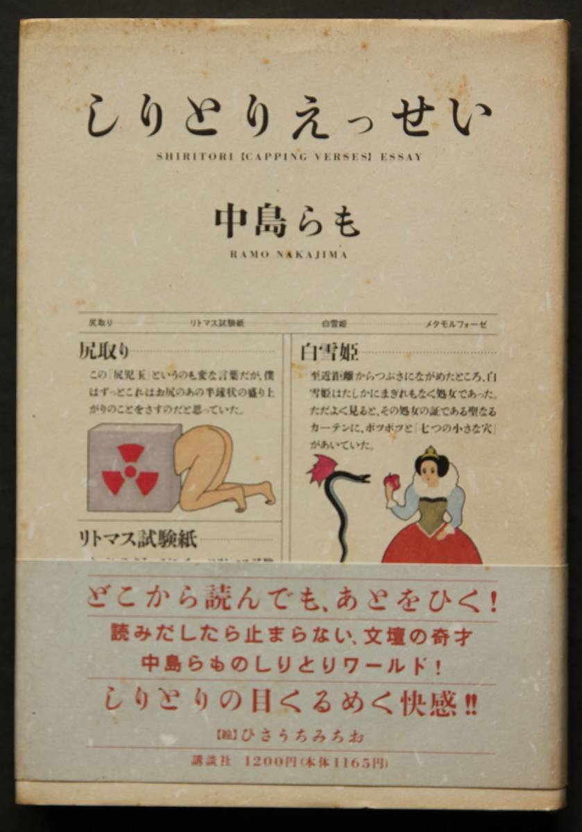 - 【エッセイ集】しりとりえっせい 中島らも著 珠玉の105篇 →白雪姫→メタモルフォーゼ→ぜいたく→くさる→ルナティック→苦痛→