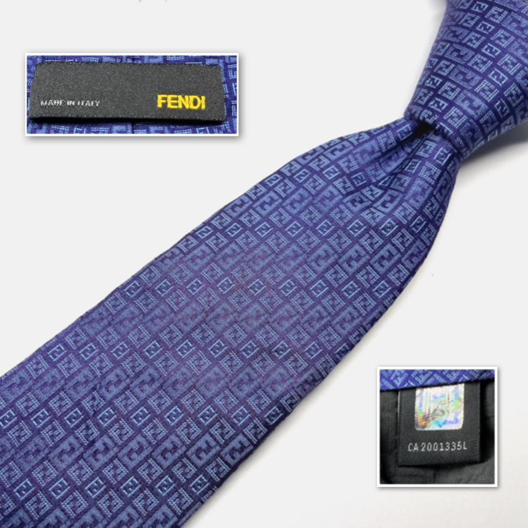 - フェンディ ネクタイ 高級シルク100% ズッカ柄 ブルー イタリア製