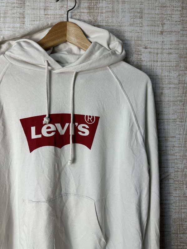 - ☆訳アリ US古着 Levi‘s リーバイス パーカー フード ロゴプリント ホワイト 白 スウェット トレーナー【M】コットン ◆4108◆