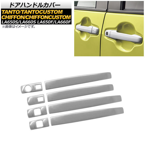 > ドアハンドルカバー ダイハツ タント/タントカスタム LA650S/LA660S 2019年07月~ 鏡面シルバー ハーフタイプ ステンレス製
