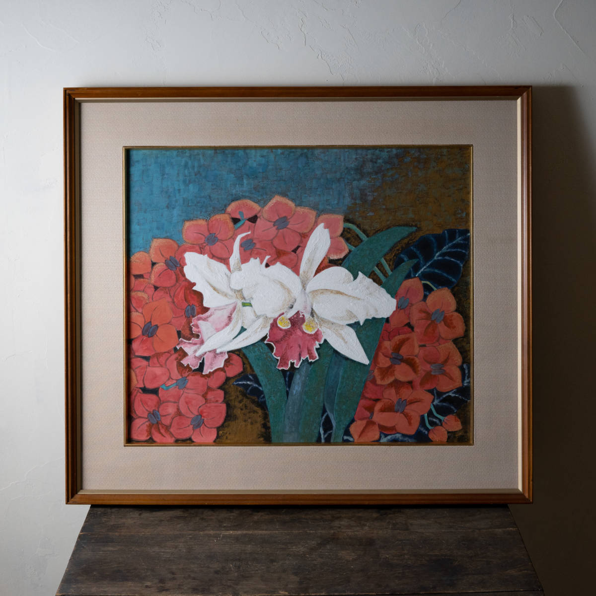 - 西川春江 花 日本画 真作補償 額装絵画 10号