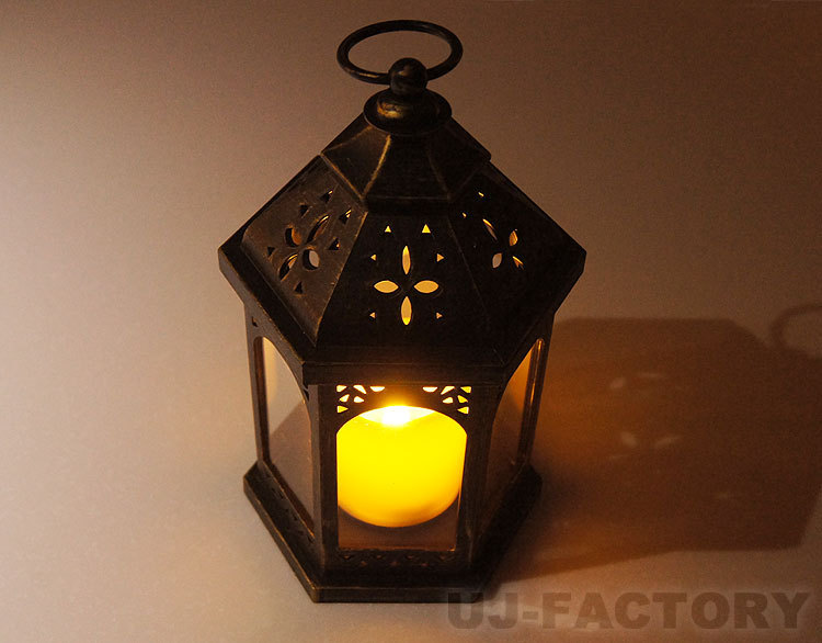 - ★ヘキサゴンアンティークランタンライト/ゴールド×1個(電池式)★電球色LED採用!ゆらめく灯りがオシャレなLEDランタン♪