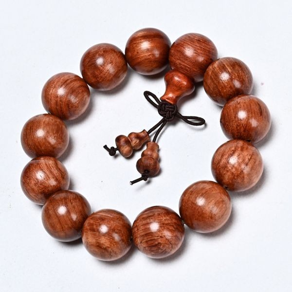 - 海外発送 ビルマカリン ホンカリン 本花梨 ビルマローズウッド ブレスレット お守り 数珠 念珠 木珠 18mm 13玉 小孔 ひょうたん