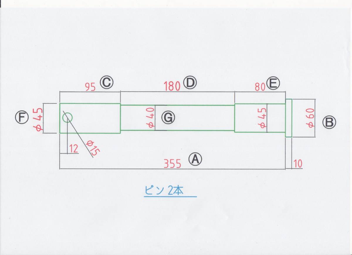 - NO 1598 Φ45用 ツバ下355mm 中間φ40部分180mm 鍔付きバケットピン 2本1セット