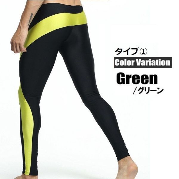 > 送料無料 メンズタイツ スポーツスパッツ ロングスパッツ スポーツレギンス メンズ レギンス YD0003 グリーン M