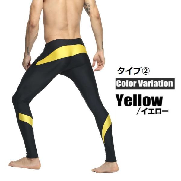 - 匿名発送 メンズタイツ スポーツスパッツ ロングスパッツ スポーツレギンス メンズ レギンス YD0003 イエロー M
