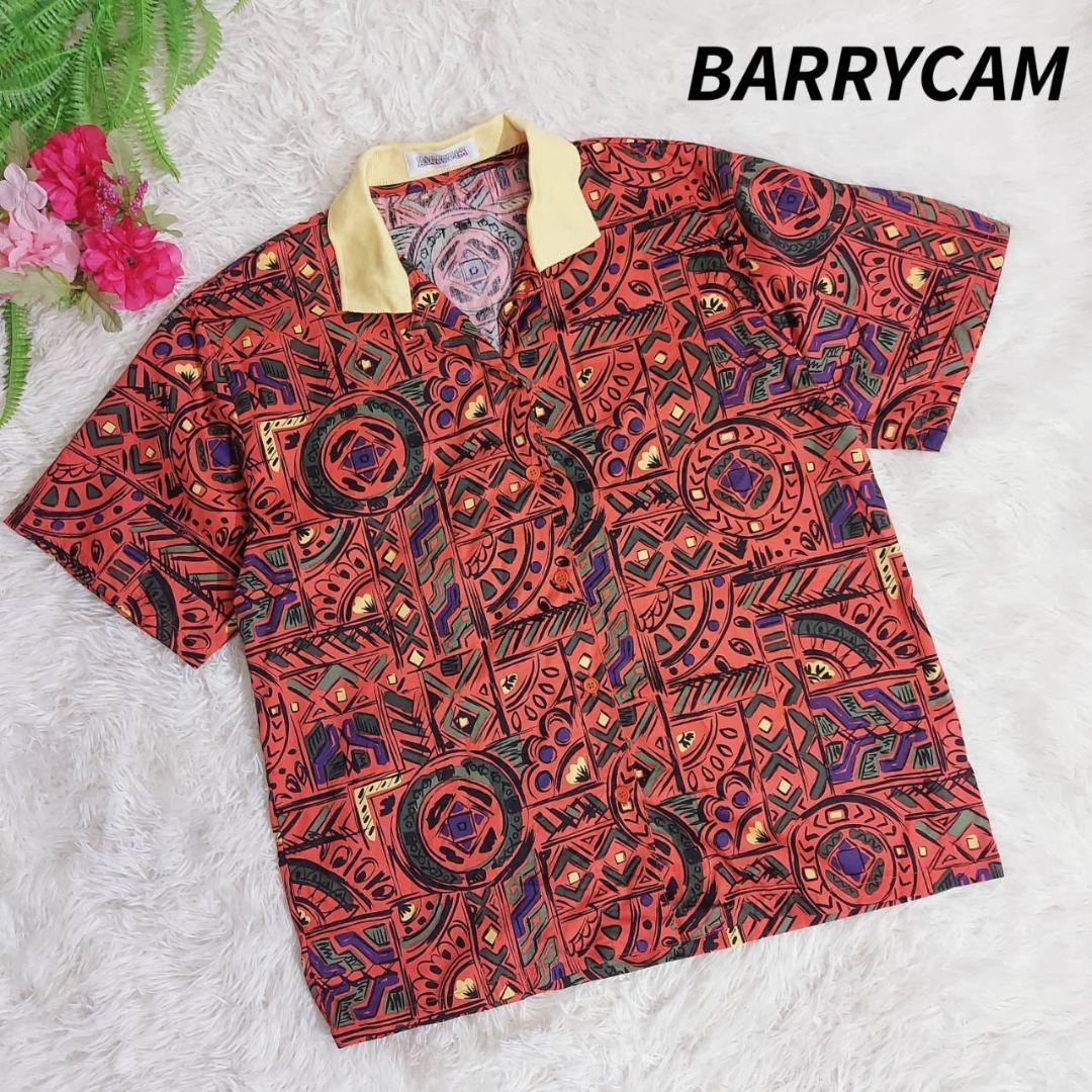 > レトロ古着 BARRYCAM バティック・エスニック総柄・半袖シャツ ゆったりデザイン 表記サイズ11号 実質XL トマトっぽい赤 日本製67887