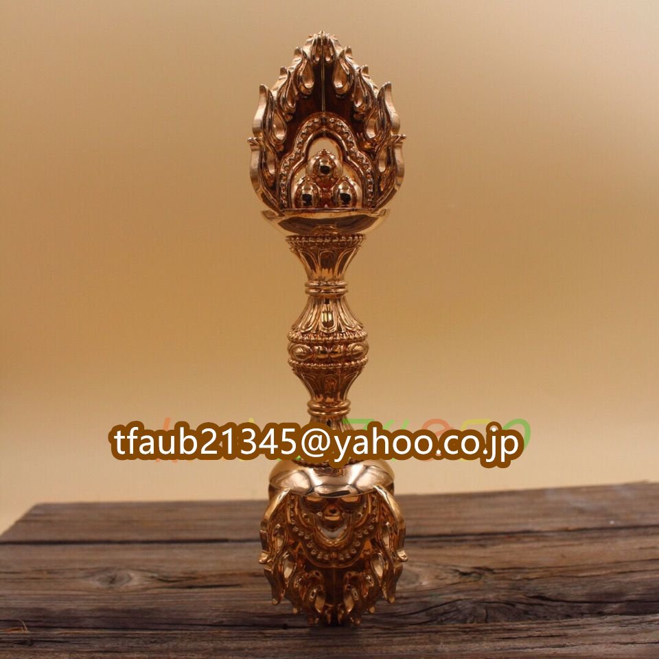 - 「密教法具 寺院仏具」 真言宗 宝珠杵 金剛杵 仏教工芸品 銅製 磨き仕上げ 長さ22cm