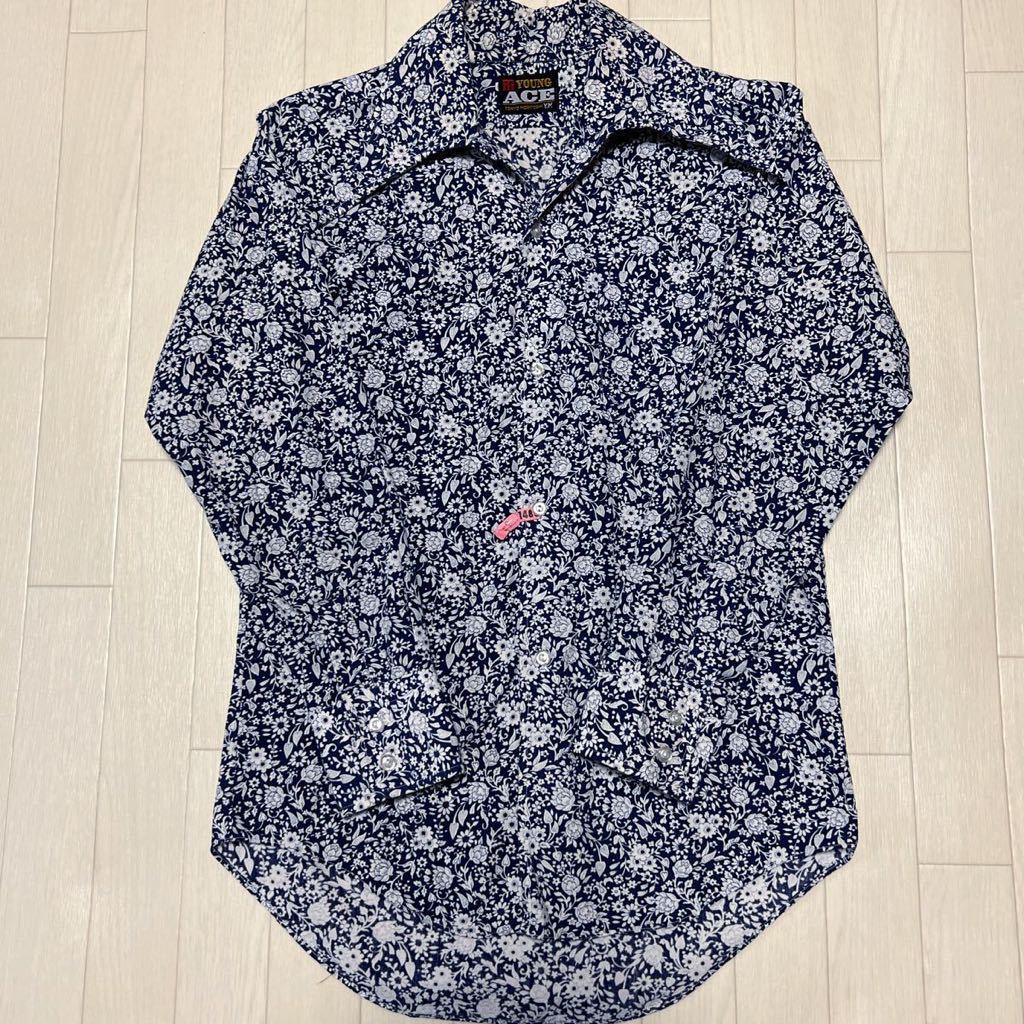 > 40s Vintage YOUNG ACE TOKYO MORITOSHI 総柄 柄シャツ 花柄 レトロ アート ロングポイント ビンテージ 長袖シャツ