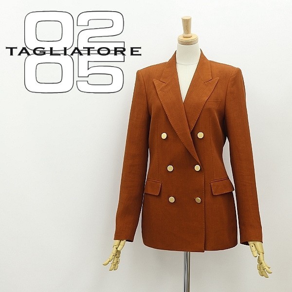- ◆TAGLIATORE 0205 タリアトーレ リネン 金釦 ダブル ジャケット 茶 ブラウン 40/M