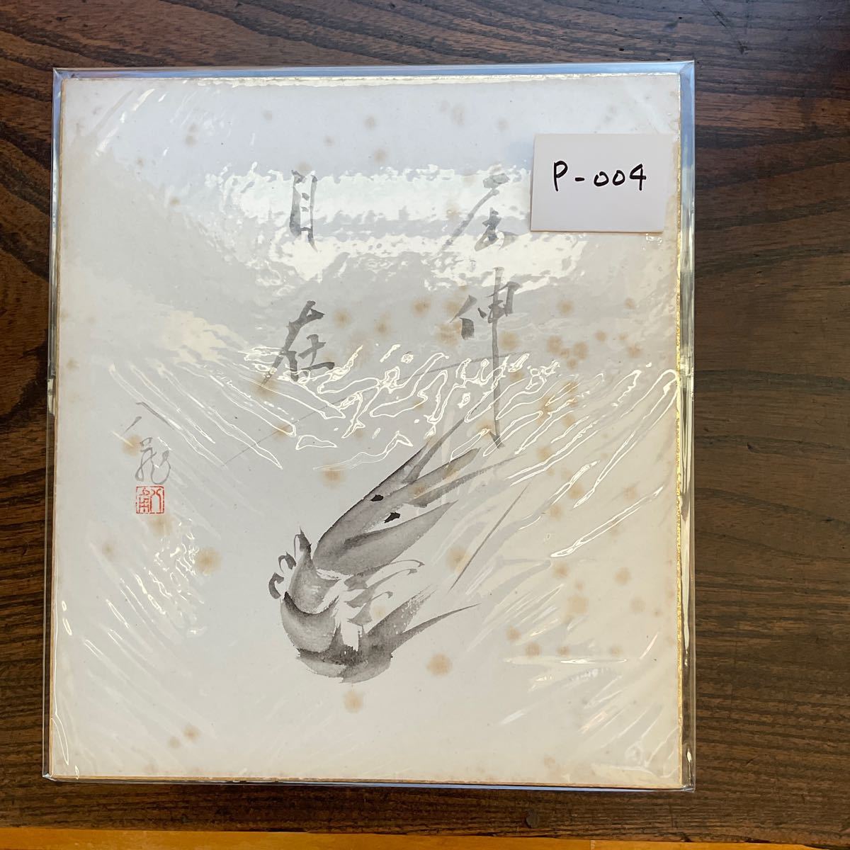 - ★色紙★屈伸自在★海老★直筆サイン★古美術★蔵出し★P-004★昭和レトロ★御園座★直筆サイン色紙★本物★当時物★