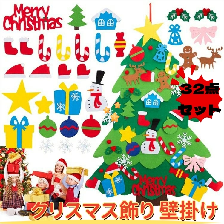 - 新品 クリスマスツリー 不織布32点パーツ付き取り外し可能 クリスマス飾りデコレーション 壁掛け 子供 プレゼント