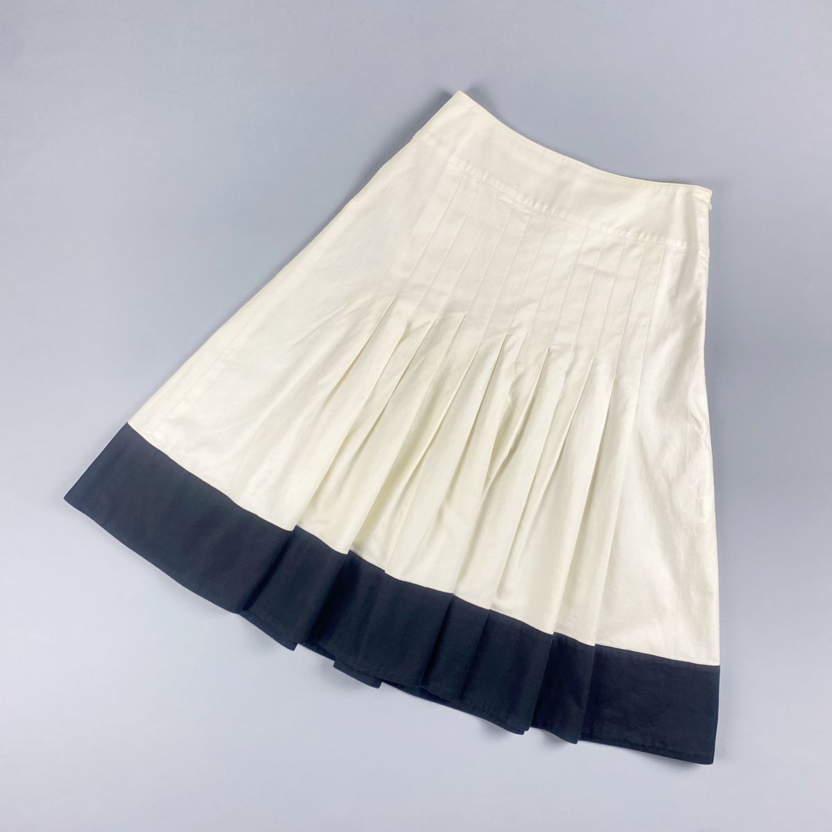 - TABASA et Pitchoune タバサ エ ピッチュン プリーツフレアスカート リネン混 ミモレ丈 裏地無し 白 ホワイト 黒 ブラック サイズ36*JC837