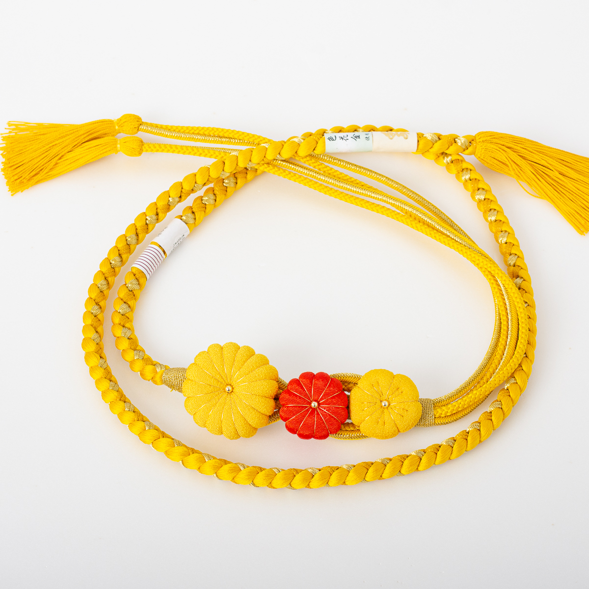 - 振袖用帯締め 帯〆 花飾り パール 丸組 正絹手組 撚房 No.3518