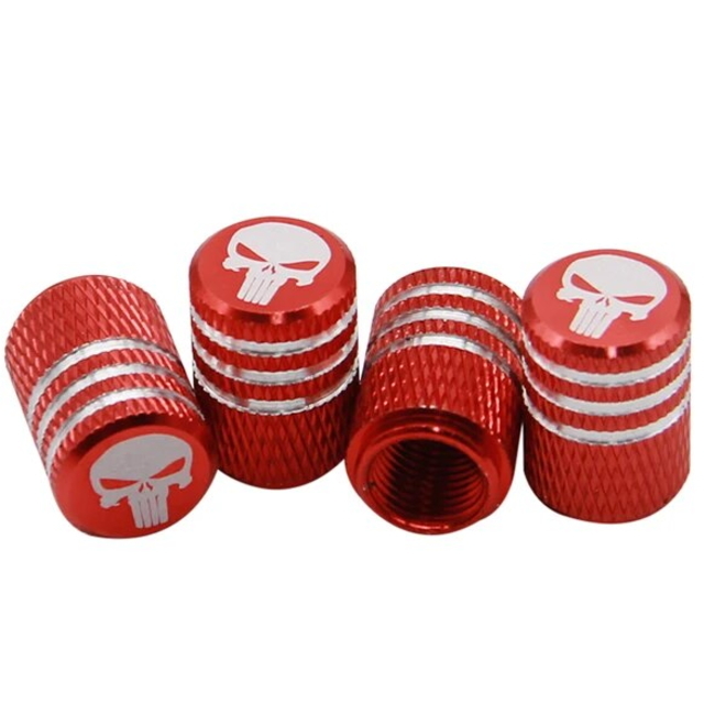 - PFM スカルデザインタイヤバルブキャップ [レッド]4個セットアルミ合金タイヤバルブキャップ ドクロデザイン 車/バイク/自転車等のカスタム