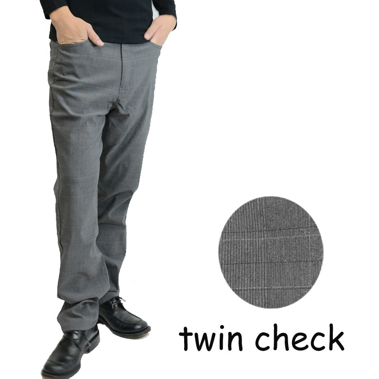 - ツインチェック スーパーストレッチパンツ スーパーストレッチ 88861 新品ツインチェックグレーL