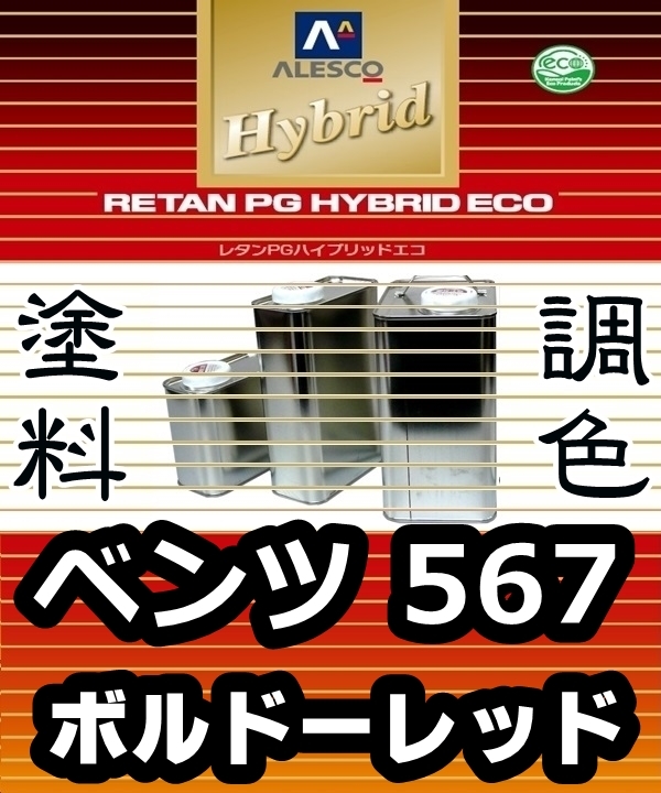 > ●レタンPGハイブリッドエコ 調色塗料【ベンツ 567/3567 ボルドーレッド P 希釈済500g】関西ペイント PGHB 1液ベースコート