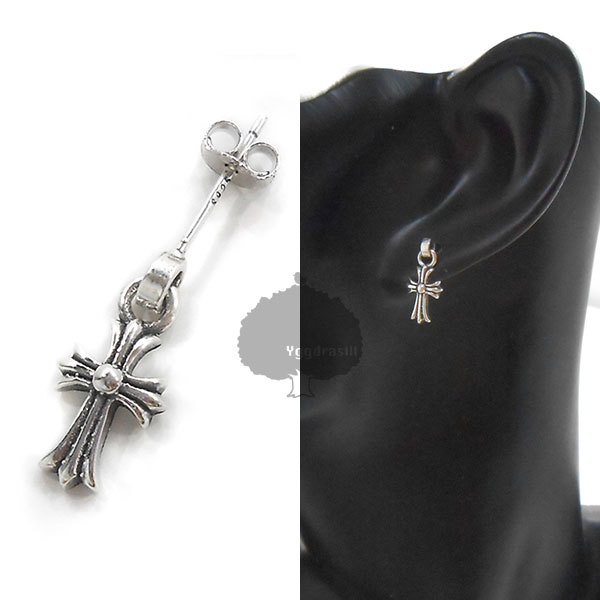 - YGG★新品 ベビーファット クロス ピアス 銀 1個 片耳 シルバー ユニセックスOK シングル 十字架 オシャレ