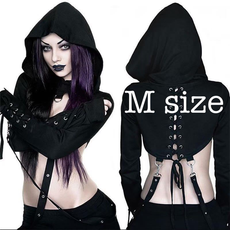 - パーカー モード ショート丈 アウター ジャケット 長袖 パンク 衣装 コスプレ 黒 ブラック M