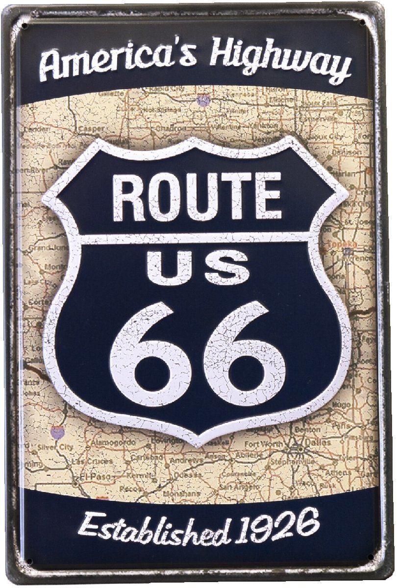 - アンティークメタルエンボスプレート S [ROUTE US66 BL]
