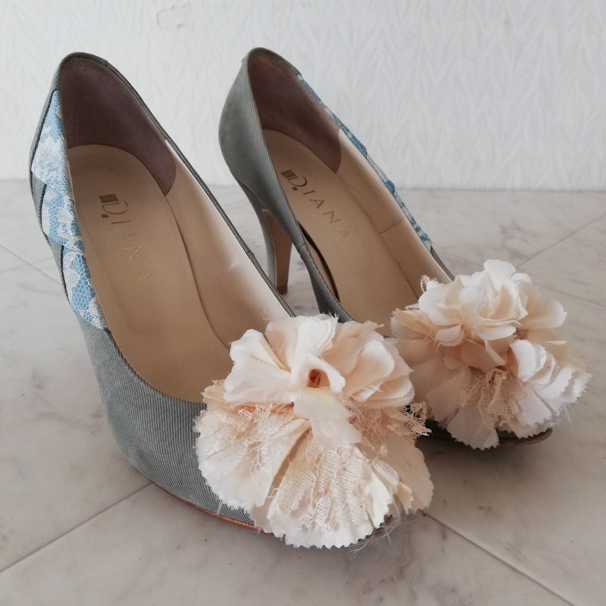- 247/DIANA ダイアナ 本革 コサージュ付きパンプス 22.5cm