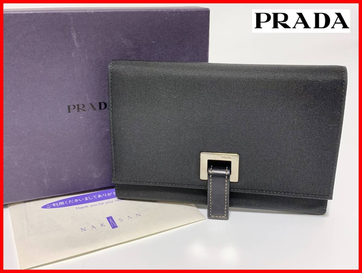 - 即決 PRADA プラダ 三つ折り 財布 黒 箱付 ウォレット レディース メンズ D7