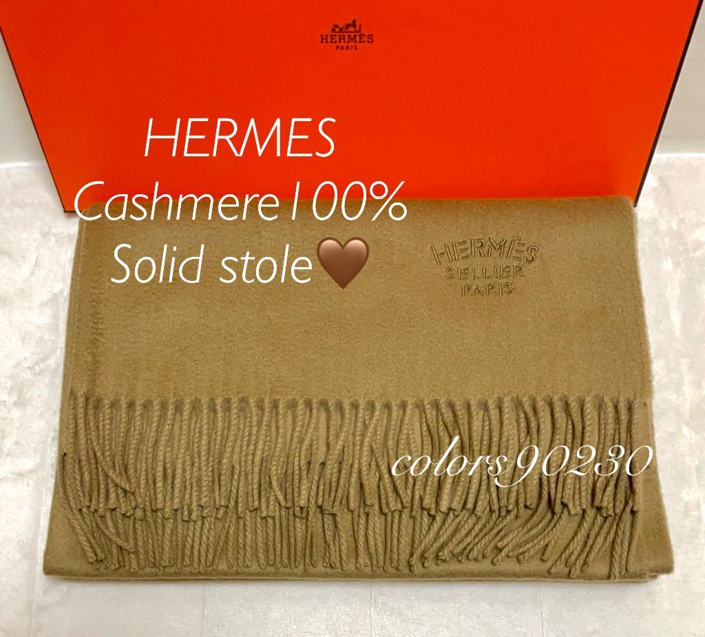 > 完売希少!参考上代約22万円◆未使用 エルメス カシミヤ 大判 ソリッド ストール キャメルベージュ ブラウン ブランケット カシミア 正規品