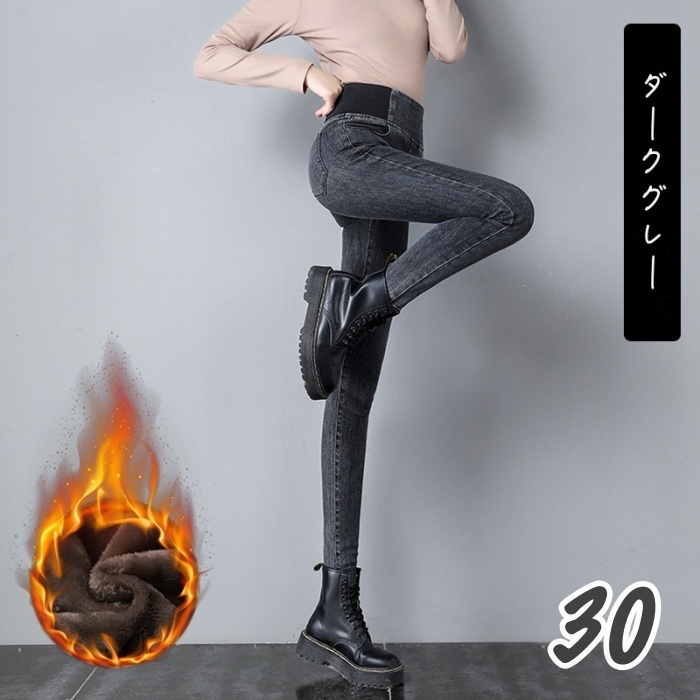 - 送料無料★新品 裏起毛 ストレッチ デニムパンツ 強力ストレッチ スリムパンツ ウエストゴム スキニー ロングパンツ ★ダークグレー/30