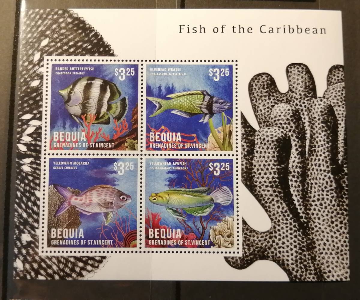 - セントヴィンセント・ベキア 魚(4種小型シート) MNH