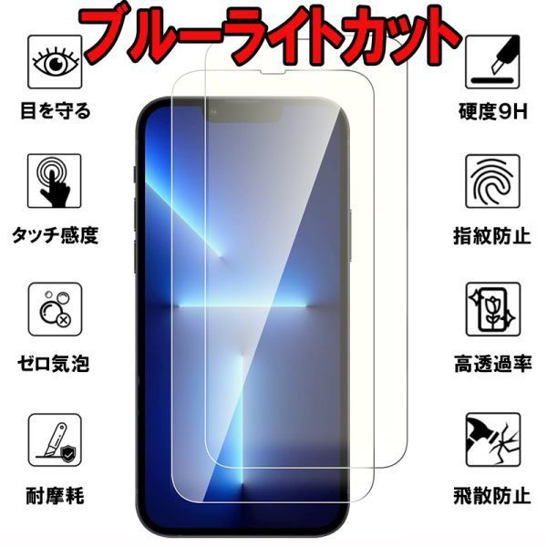 - 2枚入り iPhone 14 Plus ブルーライトカット ガラス フィルム アイフォン 液晶 画面 保護 守る シート シール 頑丈 カバー Glass Film 9H