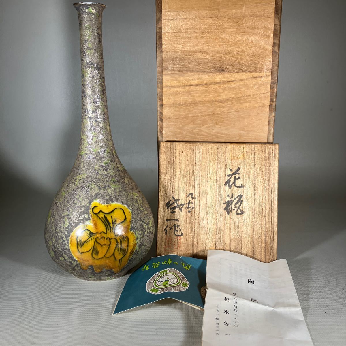 - 松本佐一造 九谷焼 花瓶 花生 銀彩 垣間見る翠が! 共箱 888