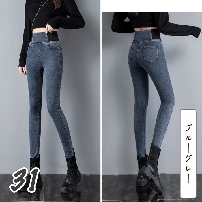 - 送料無料★新品 8cm ストレッチ デニムパンツ 強力ストレッチ スリムパンツ ウエストゴム スキニー ロングパンツ ★ブルーグレー/31