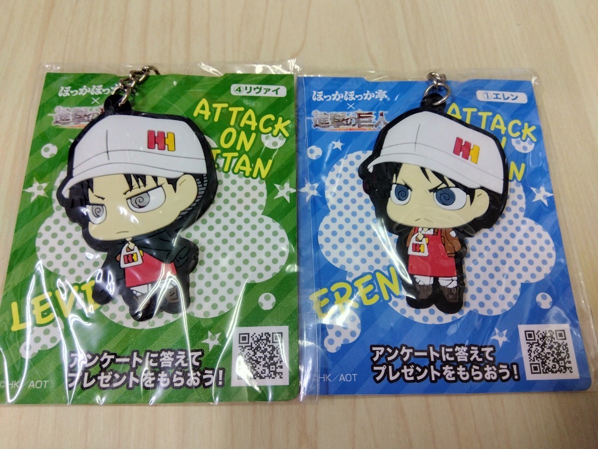 - ほっかほっか亭×進撃の巨人 リヴァイ&エレン ラバーキーホルダー 2個セット 進撃の巨弁キャンペーン 未使用非売品