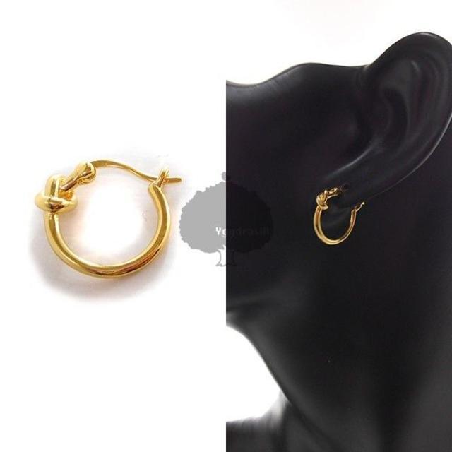> YGG★新品 ノット ピアス フープピアス ゴールド 金 結び目 輪っか 1個 片耳 小ぶり メンズ レディース ユニセックス OK