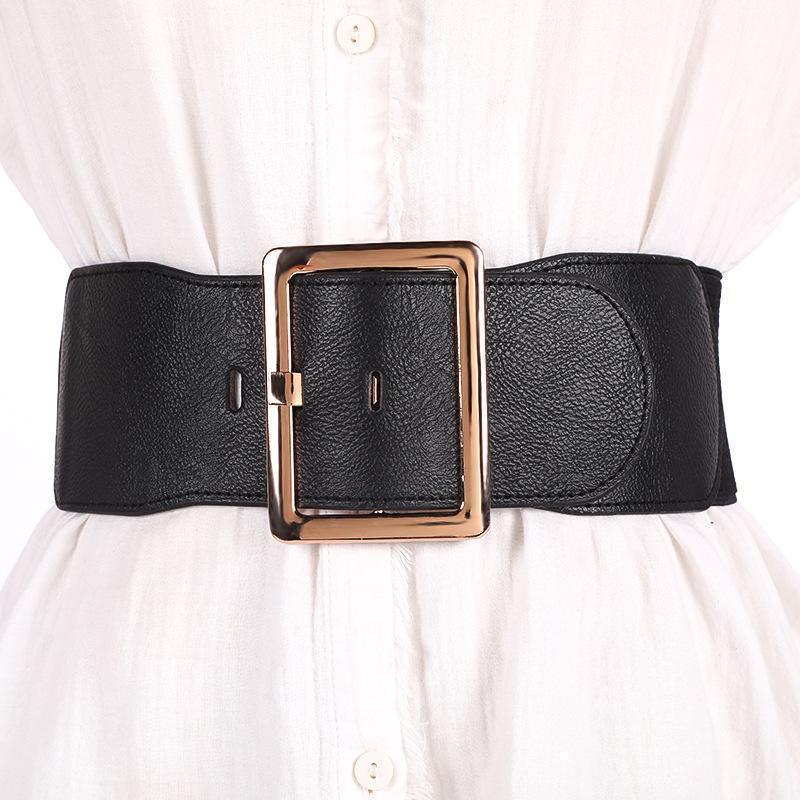 - 【ブラック】【ゴールドバックル 幅広ゴムベルト】金 レディース 太ベルト