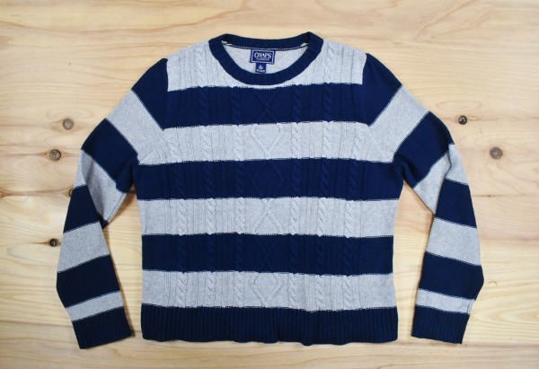 > USA古着 CHAPS ボーダー柄 ケーブル柄 ニット セーター sizeS相当 紺灰 チャップス ユース ラルフローレン アメリカ アメカジ