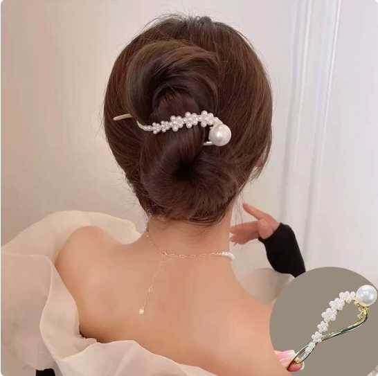 - 海外輸入雑貨 人工真珠 ヘアクリップ ツイストクリップ 髪留め パーティ 結婚式 エレガント ネコポス 送料一律¥400 新品未使用品[E-387]