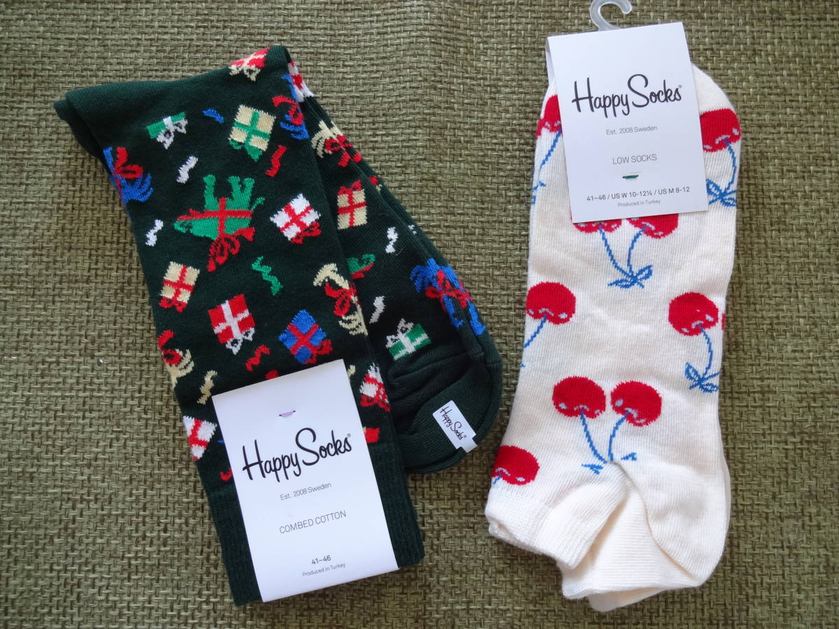 - 2足セット ハッピーソックス ユニセックス新品ソックス靴下41~46 26〜29.5cm紳士用メンズ クリスマス&チェリー柄 送料185円追跡OK!