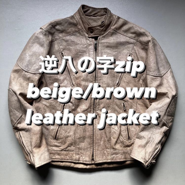 - 逆八の字 beige/brown leather jacket レザージャケット 革ジャン 裏地メッシュ