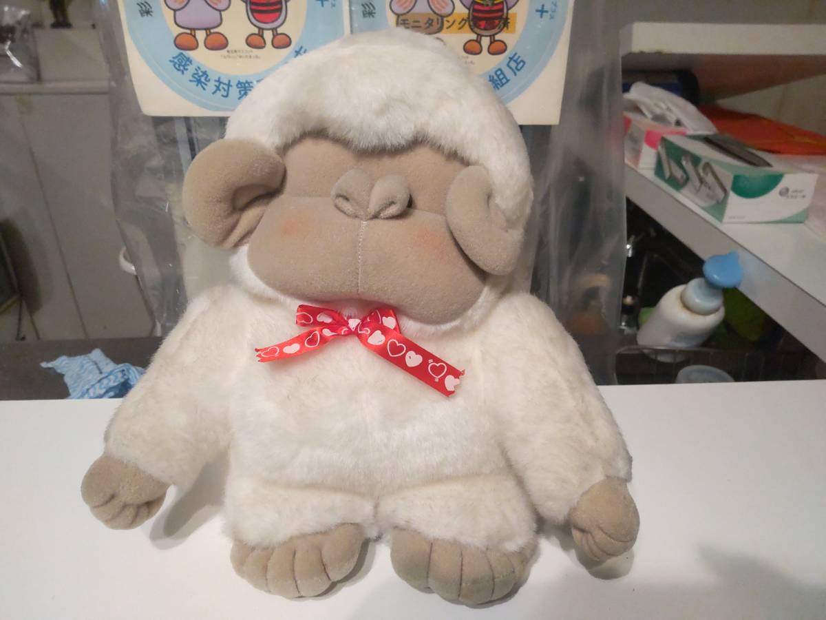 - 昭和レトロ★日本製★80年代★当時物 ビンテージ★猿 サル モンキー ゴリラ ぬいぐるみ 人形 17cm★ホスト ホワイトゴリラ 動物 アニマル