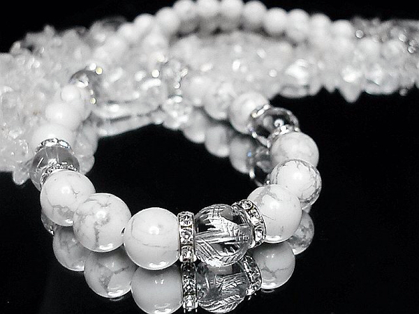 - 天然石昇龍手彫り銀箔水晶ホワイトターコイズ12ミリネックレス