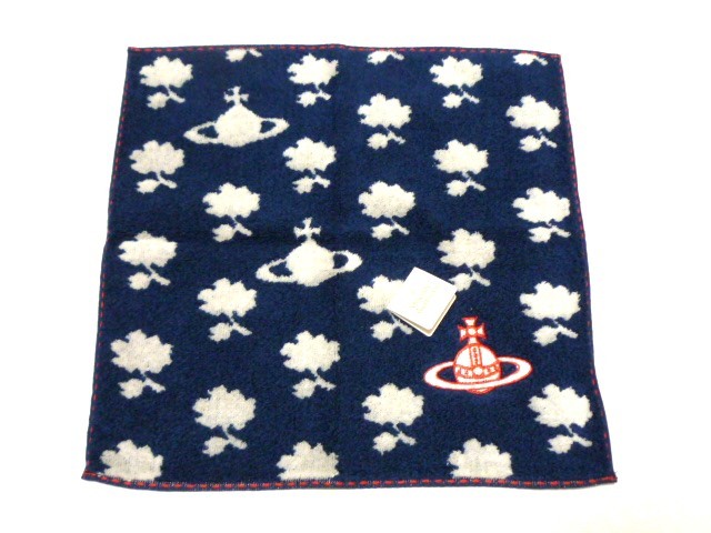 - 即決/Vivienne Westwood ヴィヴィアンウエストウッド タオル ハンカチ オーブ 花 ネイビー 紺 レア 新品未使用